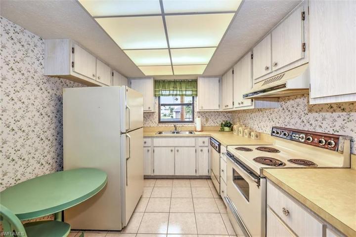 Quiet neighborhood within walking distance to downtown restaurants and fun. This waterfront condo is a fixer upper worth the effort. New owner can install a *boat dock* and *boatlift* with approval from association.The lanai is 27′ x 7′ and pocket doors open from the living and bedroom locations. With new screens and flooring it will be a great spot to relax or entertain your friends. There was no flooding in this complex from Ian. A new roof has been installed. Carports are scheduled to be replaced soon. Both bedrooms have full baths. The living and kitchen floors are original tile in great shape. Lots of light and an open layout make this home feel spacious at 1200 sq ft. There is room for a boat dock and lift.