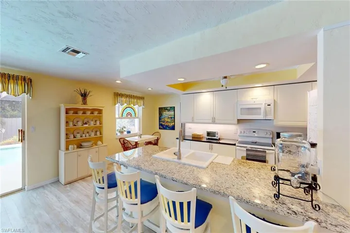 Paradise awaits you at this coastal beach cottage, just a short distance from Residents Beach on Marco Island! This light and bright two-story, inland home is ready for one to make their own or use as investment property. The updated addition of the 2nd story in-law suite is a nice feature! Enjoy the many upgrades this furnished 4 Bedroom, 3 Bathroom offers including: updated kitchen with granite countertops, 2019 Roof and Screened Lanai, 1st and 2nd floor master ensuites, exterior shower by pool, and two AC units. The exterior living space is captivating!! Enjoy daily swims in the spacious pool offering Southern exposure. The rear lanai is fenced and nicely landscaped providing ultimate privacy. This beach cottage offers central island location nearby many local restaurants, shops and of course the beach! Enjoy the experience of the Marco Island lifestyle today.