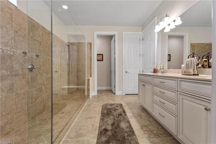 Welcome to Bridgetown! This stunning 3 bedroom + den, 3 bathroom residence is situated on one of the larger lots in the community – tucked away from traffic with a gorgeous lakeview! Over 100K of added upgrades including an additional 4ft added to the 3-Car Garage! The great room creates an ideal entertaining hub with seamless zero corner sliders for quintessential Florida indoor/outdoor living. Step outside to your extended lanai with a custom heated pool & spa with sunshelf & fiberoptic lighting, outdoor kitchen (grill | 2023), newly installed “Super Screen” pool enclosure (2022), Storm Smart screen shutters and serene lake view! Kitchen features a custom island, granite, stainless steel appliances, custom backsplash, wall oven, and a walk-in pantry. The main bedroom boasts a tray ceiling, custom closet, and a spacious walk-in shower. The 2nd bedroom offers an en-suite bath, bay window with plantation shutters – providing privacy for guests. Den has tile floor & French doors adding versatility and perfect spot for home office. Exterior Painted (2022). | Amenities include lap/resort-style pools, hot tub, fitness center, bocce, pickleball, tennis, Tiki Bar, and fire pit.