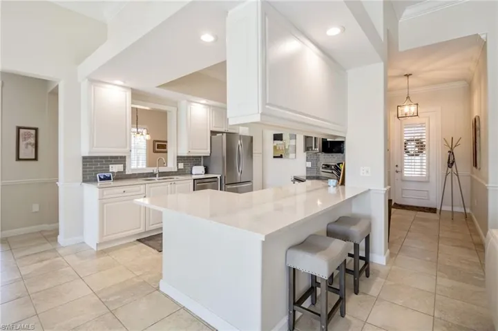 Experience Florida living at its finest in this impeccably maintained, renovated (2021) Carlyle model by DiVosta. Nestled on a quiet cul-de-sac in Del Webb’s Bellera Walk, this 4-bedroom, 4-bathroom home offers 2,487 sq. ft. of sophisticated, light-filled space. HOME HIGHLIGHTS: OUTDOOR OASIS:Enjoy a unique screened front porch or retreat to the private back lanai, featuring a heated pool/spa, privacy wall, and serene water views; REFINED INTERIOR: Features crown molding, plantation shutters, and real hardwood floors in all bedrooms. The open great room seamlessly blends indoor and outdoor living; RENOVATED KITCHEN: Updated with new KitchenAid appliances, quartz countertops, and a designer glass backsplash; PRIMARY SUITE: A true retreat with a walk-in closet and a newly renovated bathroom featuring a glass-enclosed shower and soaking tub; AND COMMUNITY LIFESTYLE: Located in Ave Maria, residents of Del Webb enjoy low HOA fees and world-class amenities including a community restaurant/bar, resort and lap pools, pickleball, and a fitness center with steam room and sauna. Optional golf memberships are available at the premier Panther Run Golf Club and Ave Maria Town and Ave Maria University are just a golf cart ride away. This rare lot and move-in-ready floor plan represent one of the best values in SW Florida!