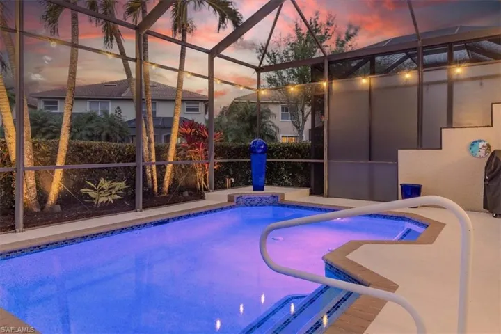 A rare opportunity to own a beautifully upgraded lakeview townhome with a private pool in highly sought-after Bella Terra, offering nearly 2,300 square feet of refined living space designed for both comfort and style. Featuring 3 spacious bedrooms, 2.5 bathrooms, a versatile loft, and a 2-car garage, this residence lives like a single-family home without the maintenance. The open-concept floor plan is ideal for everyday living and entertaining, highlighted by an upgraded kitchen with enhanced finishes, quartz countertops, a matching quartz backsplash, and a functional layout that flows seamlessly into the main living and dining areas. Thoughtful upgrades such as custom crown molding, upgraded window trim, and a decorative accent wall add architectural elegance throughout. Upstairs, the expansive primary suite serves as a private retreat, complete with a large walk-in closet and a spa-inspired bathroom featuring dual vanities, a soaking tub, and a separate walk-in shower. A spacious loft provides flexibility for a home office, media room, or additional lounge space. Step outside to your private screened lanai and experience one of the home’s most exceptional features—a southwest rear-facing lake view paired with your own private pool. Recently refreshed with updated pool surface and tile, and enhanced by Pentair color-changing LED lighting, this outdoor space offers the perfect setting for relaxing evenings and stunning sunset views. Professionally designed landscaping and ambient landscape lighting further elevate the outdoor experience, creating a true Southwest Florida retreat. Additional highlights include a newer roof—an increasingly valuable feature, as roof replacement is now typically a homeowner responsibility within the community. Residents of Bella Terra enjoy resort-style amenities, including a lagoon-style pool and spa, fitness center, tennis and pickleball courts, basketball, volleyball, bocce, inline skating rink, clubhouse, and a vibrant social calendar. Ideally located near shopping, dining, Southwest Florida International Airport, and the Gulf’s white-sand beaches. Private pool. Lake view. Upgrades throughout. Prime location. This is Southwest Florida living at its finest.