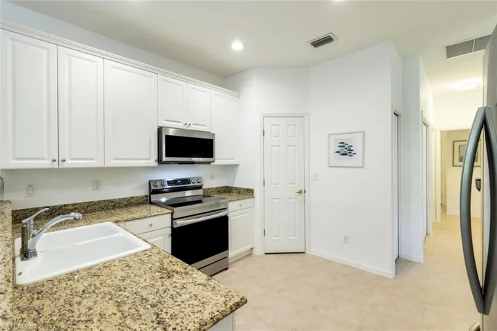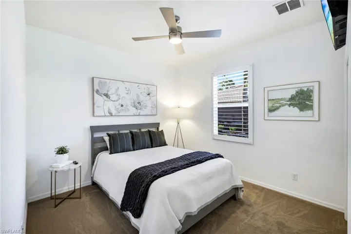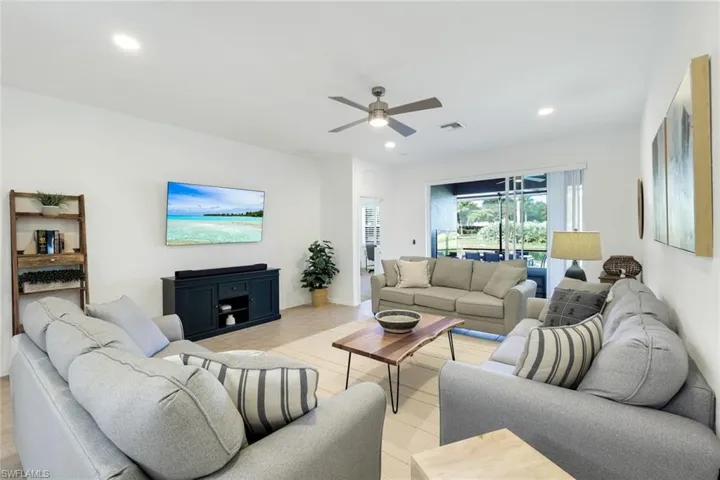 Additional highlights include tile flooring in main living areas, upgraded lighting and fixtures, and a two-car garage. Located just moments from Bella Terra’s impressive amenity center, residents enjoy easy access to the resort-style pool and spa, clubhouse, fitness center, tennis, pickleball, and more. With its prime location close to shopping, dining, I-75, and Southwest Florida’s beautiful Gulf beaches, this villa delivers exceptional value and effortless move-in ready living.