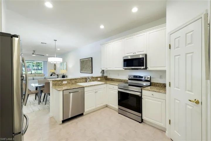 Step inside to an inviting open-concept floor plan filled with natural light and enhanced by tasteful upgrades and neutral finishes throughout. The well-equipped kitchen features granite countertops with newer SS appliances and a functional layout that opens seamlessly to the spacious living and dining areas—perfect for both everyday living and entertaining. Enjoy peaceful mornings and relaxing evenings from the private screened lanai overlooking the tranquil lake, creating a picturesque backdrop year-round. The primary suite offers a comfortable retreat with a walk-in closet and en-suite bath, while guest accommodations provide privacy and flexibility for visitors.