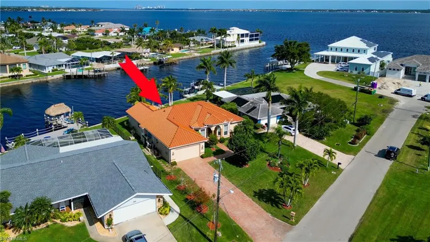 MULTIPLE OFFERS ** For a limited time, priced to sell today!** THE GOLDEN RULE of real estate couldn’t be more true for this exceptional property! Nestled at the intersection of TWO 200’ wide sailboat access canals, with sweeping river views, this home offers the pinnacle of waterfront living. Imagine waking up to stunning river vistas every morning, knowing your boat and dock are safely tucked away off the main river, shielded from the Florida summer storms. Crafted with care by Villa Homes, this custom-built residence seamlessly blends indoor and outdoor living. Every room is a window to the mesmerizing water views that surround you. The great room-style floorplan is perfect for both entertaining and everyday life, offering a spacious and open layout. The split bedroom design ensures privacy, making it ideal for both family and guests. This home boasts a stunning new metal roof and gutters, two brand-new AC units, a beautiful pavered driveway, and an oversized two-car garage. With 8’ sliders and doors, tray ceilings, plantation shutters, hurricane shutters, and a hurricane-resistant garage door, this home is both stylish and secure. Additional features include a whole-house water filtration system and more. Offered furnished, with a few exclusions, this home invites you to live the waterfront lifestyle of your dreams today. Step into your dream waterfront home and start enjoying the best that life on the water has to offer. This is your invitation to hours of fun on the open waters of the Gulf of Mexico. Southwest Florida’s waterways are renowned for their scenic beauty, tranquil passages lined with mangroves and dotted with picturesque islands. A playground for boaters, providing world-class fishing, marine life and endless exploration. Whether year round or vacation use, this lovely home is ready for you! Want to take the leap into the world of vacation rental ownership and financial prosperity? It’s all set to work for you. This is the perfect home that fits your budget, your boating desires and your lifestyle! Plenty of room to add a swimming pool on this extra long 160’ deep lot. You’ve done your homework and you KNOW all the reasons Cape Coral has been chosen as a TOP DESTINATION in the country for waterfront living, affordability, quality of life and safest cities to live! AND we found the perfect home for you! BONUS: Remarkably, this lovely home experienced no flooding or water intrusion during Hurricane Ian and comes with an assumable flood insurance policy at just $1,265 per year if desired.