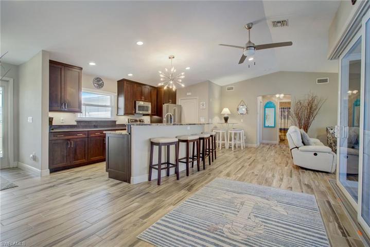 Under contract – Accepting backups * AN ASSUMABLE MORTGAGE at 2.709% is available as a financing option to qualifying buyers meeting lender’s requirements * Rare opportunity to purchase a stunning UPDATED TURNKEY boater’s dream home at a much lower interest rate than today’s rates, saving you hundreds of $$ per month and hundreds of thousands of $$ over the loan’s lifetime! Save even more by assuming the seller’s LOW RATE FLOOD POLICY. This fabulous home is being sold FULLY FURNISHED AND TURNKEY so it’s MOVE-IN READY. Just 5 minutes to open water on a SAILBOAT ACCESS CANAL WITH DIRECT GULF ACCESS AND NO BRIDGES! With its spacious Trex-composite Captain’s Dock, 10,000 lbs boat lift, heated saltwater pool with birdcage pool enclosure, gazebo bar and more, this home has all you need to enjoy the relaxing lifestyle of living on the water! Recent updates (2023) include a NEW ROOF, new “Clear View” picture window pool screen, new stucco, new gutters & downspouts, new pool pump, new pool heater and new exterior paint. Open floor plan with 3 bedrooms, 2 full baths, PLUS a BONUS ROOM (office/den), breakfast nook, family room, laundry room (washer and dryer included) and 2-car garage. Updated kitchen with exotic granite countertops, stainless steel appliances and large island with bar-height seating. Other home features include open corner door (zero post) sliders to the lanai, vaulted ceilings, newer windows and doors and beautiful plank-style porcelain tile floors throughout (no carpets!). The owner’s suite has an ensuite bath with dual vanity sinks and granite countertop, travertine tile, jetted tub, separate shower, walk-in closet and sliding doors to the lanai and pool. Boating to open water is a 5 minute ride from your boat dock. Call today to schedule a private showing! Check out the virtual tour links for an aerial video and 3D virtual tour.