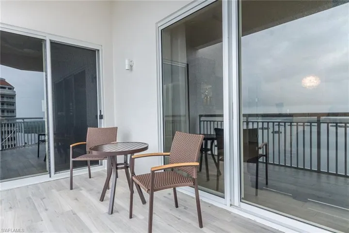Sky home like no other! Upon entering this exquisite 25th floor end unit condominium from your private secured elevator and foyer, you are greeted with the breathtaking views of the Gulf of Mexico and Estero Bay. Sophisticated and modern, this 3 bedroom, 3 bath luxury residence is superbly furnished and has high end finishes and one-of-a-kind touches throughout. Some of the interior design features include travertine flooring, 11ft coffered ceilings, open kitchen with white onyx waterfall countertop, espresso cabinetry with lit glass inserts and gleaming tile backsplash. The primary suite has large windows, picture framing the amazing endless water views and is comprised of bamboo flooring with padded fabric walls, king bed, flat screen TV, plantation shutters, sliding doors to open balcony, and private bathroom with walk-in shower and soaking tub surrounded by quartz walls and shimmer stone finishes. The 2 other guest suites also offer bamboo flooring, one with shimmer stone finishes with a queen bed, TV and private bathroom and the other bedroom features a queen bed and a built in desk. Entertaining is easy with two outdoor areas. Kitchen screened patio has electric hooded grill and table to seat 4-6. Lanai off living area and primary bedroom features an open space balcony with dramatic Back Bay and Gulf views!