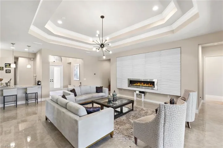 PRICE REDUCED! NOW BEING OFFERED FURNISHED! This exquisite Bal Harbor floor plan features 3,100 sq. ft. of luxury living with its blend of classic design and sophistication. The home, boasting three generously sized bedrooms plus a versatile den, three full baths and one half bath. The heart of this residence is the open-concept great room, a space masterfully designed for entertainment, featuring a wet bar with beverage fridge, alongside a formal dining area. The kitchen, a culinary haven with upgraded cabinetry, eat-in kitchen, natural-gas appliances and a design that is functional. The primary suite offers a serene sitting area, two expansive walk-in closets, The adjoining primary bath is an oasis of relaxation, featuring dual sinks, a walk-in shower, and a separate soaking tub, creating a spa-like environment within your own home. The outdoor space is equally impressive, boasting a tranquil water view, extended covered lanai and ample space for a custom pool, creating your private sanctuary.