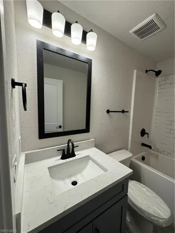 The home includes quartz countertops in the kitchen and all bathrooms, complemented by upgraded painted shaker cabinetry and stainless steel appliances, delivering a modern and cohesive design. Plank style tile flooring throughout the entire home provides durability, easy maintenance, and a clean, upscale look.
