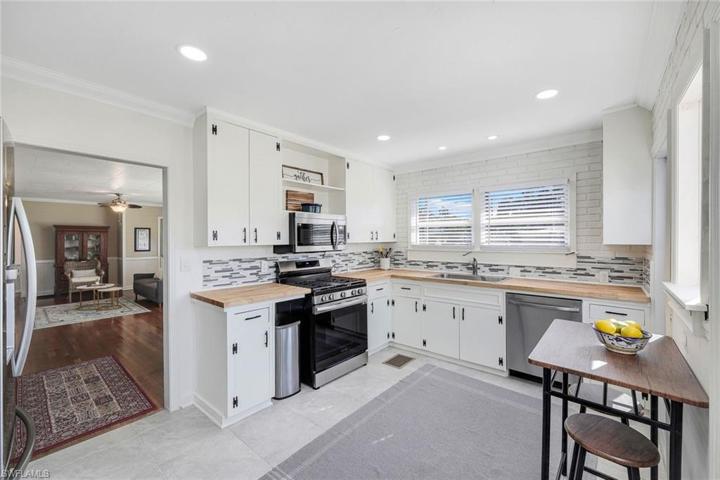 MOTIVATED SELLER, BRING OFFERS! Exceptional Location Just off Iconic McGregor Blvd, Near Fort Myers Country Club, Downtown River District & the Historic Edison Ford Estates, is this Charming Updated 3 Bedroom + Den, 2 Bath, 2 Car Garage home with 1,676 Sq Ft of Living area. Old World Charm stands out with Original Hardwood Flooring, Built-in Cabinets, Crown Molding and 2-sided Fireplace. The Newly Renovated Kitchen has Butcher Block Counters, Stainless Steel Appliances,Smart Refrigerator and the Chef will Love the Gas Stove. Other Features include Updated Baths, Water heater 2022, Deck rebuild 2022, AC & Ducts 2014, Roof 2013, Repiped 2014 and Garage Doors 2016. The Backyard is perfect for children, pets, or just relaxing with a Privacy Fence and room for a pool. The Living room, Family room and All Bedrooms are equipped with ceiling fans. Built strong with Dade County Pine to withstand hurricane force winds, the home had no damage due to Ian. This Golf cart friendly neighborhood has no HOA and no RV or Boat parking restrictions. Close to Jefferson Park & Playground, Restaurants, Shopping, Schools and just a Short Drive to Beaches and RSW International Airport. NOT IN A FLOOD ZONE!