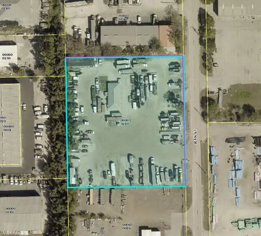 Open storage industrial lot for lease right off Alico Road west of I-75 Exit 128. 2.34 acres with 1400 sq ft air conditioned building on the property. Easy access to I-75 and US 41. Store construction materials, vehicles, semis, trucks, equipment, supplies.