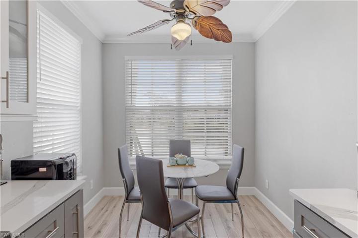 Enjoy the Fort Myers lifestyle in this fabulous townhome. Built in 2007 with a clean and well-planned 1837 sqft open floor plan. You will love living here as this home has been completely remodeled and is move in ready!! A/C was replaced in 2022. Fear no storm as this home has Impact Hurricane windows for your protection. Interior features include wood laminate flooring throughout, a beautiful chefs kitchen with S/S Appliances. 2-tone white shaker cabinets with smoke glass inserts, stone backsplash & quartz countertops with a built in wine rack & breakfast bar.. Enjoy your morning out back on the screened patio with brick pavers and southern exposure. Head upstairs to the primary bedroom which includes a large tray ceiling & spacious bathroom with a large soaking tub & separate shower with a full body showerhead. Dual sinks. large walk in closet. The guest bedrooms share a remolded Jack and Jill bathroom with a walk in shower with seamless glass door, LED mirror lighting with a new vanity & quartz countertops. Other upgrades include digital smart thermostat, crown molding. San Simeon is a gated community with a community pool, spa, fitness room, community room, and playground.