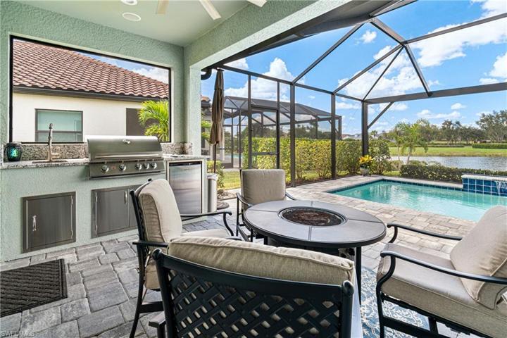 Welcome to this exquisitely designed and decorated home, nearly new and loaded with upgrades-IMPACT WINDOWS and DOORS, plank tile floors, 8 ft. high doorways, White kitchen cabinets, Quartz countertops, Stainless appliances- with GAS! The open floor plan seamlessly connects indoor and outdoor living. Pocket sliders lead to the lanai and the custom outdoor kitchen.The pool showcases a waterfall, perfect for relaxation and entertaining. The screened lanai has been extended and includes a Picture Window feature for unobstructed water views. This home is SPOTLESS. Verandah is a stunningly beautiful community, built around 2-18 hole golf courses (Golf membership is optional) Social membership is required and includes: limited golf privileges, 2 dining options, kayaking, over nine miles of trails and boardwalks, pool with lap lanes, 5 clay tennis courts, 8 Pickleball courts, full times activities director, staffed fitness center, Bocce and more. Verandah is a NATURAL GAS community, with two gatehouses, community patrol and NOT in a flood zone! 12 minutes to downtown, 10 minutes to the Walmart/Target shopping area, 20 minutes to either RSW or Punta Gorda airports. PET Friendly!