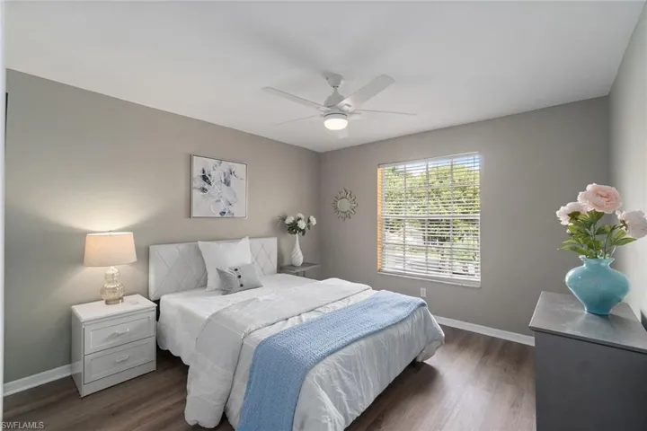 Sweeping, tranquil views set the tone for this beautifully refreshed residence in Grand Palm Village within The Vines at Estero Country Club. The property’s expansive wraparound screened lanai was designed to fully embrace the surrounding scenery, creating a peaceful vantage point and a true extension of the indoor living space. This unit captures only scenic golf course and serene pond views for as far as the eye can see. Thoughtfully updated with recent kitchen and bathroom renovations, the unit offers a clean, modern feel and the convenience of a truly move-in-ready opportunity. The renovated kitchen anchors the living space with updated cabinetry, upgraded quartz countertops, and stainless-steel appliances, blending style and functionality while flowing seamlessly into the open dining and living areas. Natural light fills the home, and the southwestern facing wraparound lanai offers generous additional space for morning coffee, outdoor dining, or relaxing evenings. Both bathrooms have been recently remodeled with modern finishes, creating a cohesive and updated aesthetic throughout. The primary suite offers a comfortable retreat with generous closet space, and a refreshed bath, while guest accommodations provide privacy and flexibility for visiting family and friends. With the major updates already completed, the home delivers the ease buyers are looking for today—no projects, no waiting, simply move in and enjoy the lifestyle. Residents enjoy access to optional membership at Estero Country Club, offering championship golf, tennis, pickleball, fitness, dining, and an active social calendar, all just minutes from Coconut Point, RSW International Airport, and the Gulf beaches.
