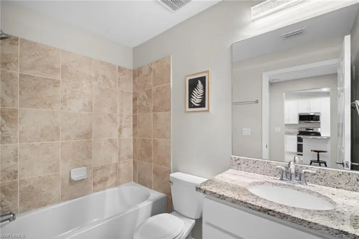 Welcome to easy, breezy Southwest Florida living in this updated second-floor Veranda condo at Babcock National Golf & Country Club—where vaulted ceilings, dual screened lanais, and golf course views set the tone for a relaxed yet refined lifestyle. Best of all, this home includes a transferable full Golf Membership, offering unlimited access to the 18-hole Gordon Lewis–designed championship course. Recent updates include professional interior painting, no carpet throughout, new ceiling fans, new light fixtures, and all-new appliances except the refrigerator. The home is further enhanced by roll-down shades on both the front and rear lanais, providing added comfort and sun control year-round. Mechanical upgrades include a new water heater installed 11/2025 with a 10-year warranty (transferability to be verified), new emergency shut-off valves on all fixtures, and a new hot water expansion tank. The popular Bromelia II floor plan features 2 bedrooms + den, 2 baths, and an open-concept layout that lives large. Vaulted ceilings elevate the main living area—only available in top-floor units—while the front and rear screened lanais invite cooling cross-breezes, perfect for morning coffee or sunset unwinding. Positioned on the first hole, enjoy tranquil water and fairway views with glowing sunrise skies. Additional features include impact-resistant windows and sliders, tile in the main living areas, and Kromitex SPC flooring in the bedrooms and den—stylish, durable, and allergen-friendly. The kitchen is well-appointed with a full stainless steel appliance package, and the home includes a full-size washer and dryer. A Daikin Fit 17-SEER A/C (2-ton) with UV light and ionizer, installed January 2024, helps inhibit mold and bacteria. A detached one-car garage completes the package. Ideally located near the community’s amenities, residents enjoy a true resort lifestyle with a resort-style pool and lap pool, state-of-the-art fitness center with sauna, luxurious spa, and a full-service tiki bar & grille—all within the vibrant, master-planned setting of Babcock Ranch. With coffee shops, an ice cream parlor, food trucks, live music, and a weekly farmer’s market just steps away in Downtown Babcock Ranch, this low-maintenance, golf-inclusive retreat offers a lifestyle that feels like a daily escape.