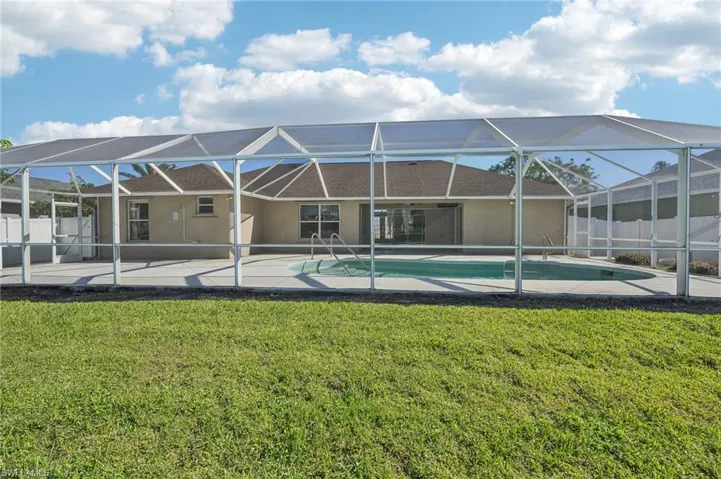 Dreaming of endless sunshine and a home that feels like a vacation every day? This beautifully updated 3-bedroom, 2-bathroom home in one of Cape Coral’s most desirable neighborhoods is ready for you! Step inside to soaring vaulted ceilings, a cozy built-in fireplace, and a stylish dry bar/coffee nook—perfect for entertaining or your morning pick-me-up. The spacious kitchen features granite countertops and sleek stainless-steel appliances, offering both elegance and functionality. Outside, your private backyard oasis awaits! Enjoy the Florida lifestyle year-round with a HEATED chlorine pool, a BRAND-NEW variable speed pool pump, and a 2023 pool cage for added comfort. The oversized screened lanai and pool deck provide plenty of room for relaxation, all surrounded by a white privacy fence (new in 2023).