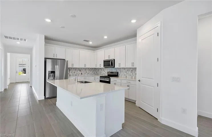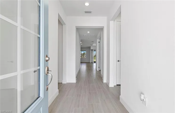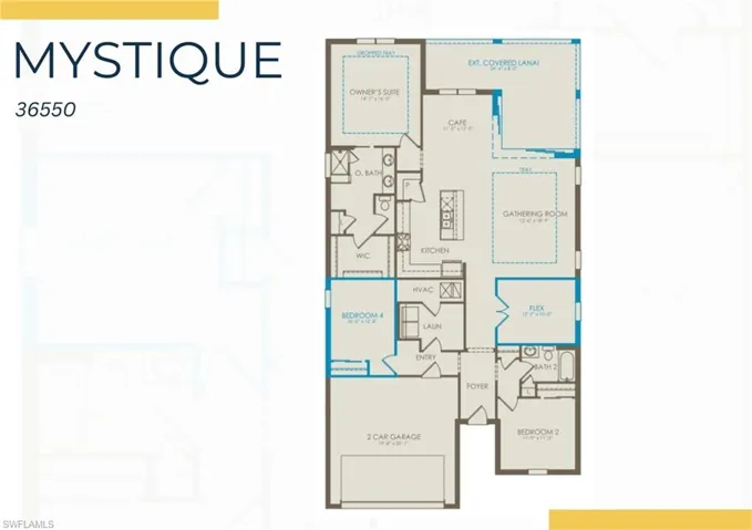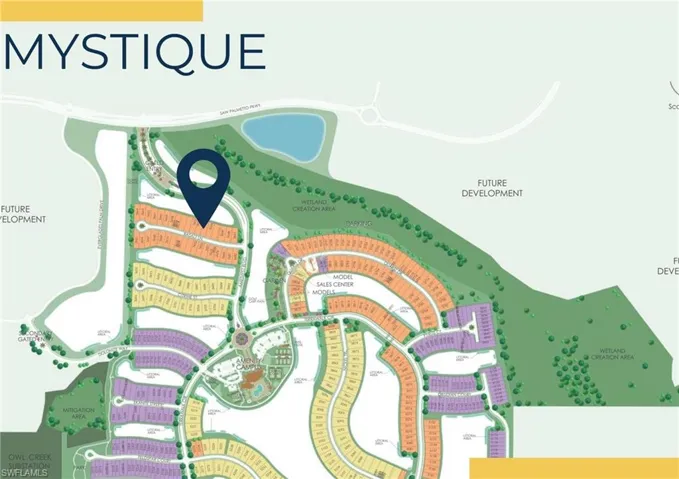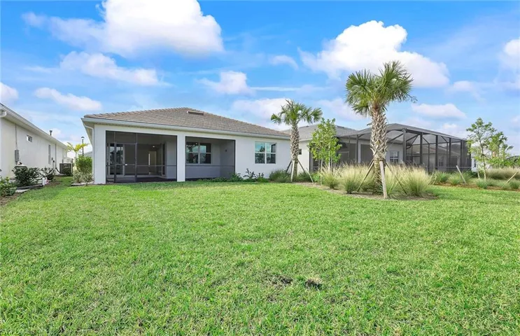 New construction, available now! The Mystique one-story floorplan is being built with 3 bedrooms, a den, 2 baths, & 2-car garage on a beautiful water view! Kitchen open to the gathering room, being built with center island, stainless steel appliances, upgraded quartz counters in the kitchen and bathrooms and screened in covered lanai. Upgrades include tray ceilings in the gathering room and owners suite, zero corner sliding glass doors, 8 ft interior doors, flat screen TV prep inside and outside, and so much more. TerraWalk is a gated community located in Babcock Ranch with a private 8 acres amenity campus featuring internal walking trails throughout the community, pool with spa, fire pit lounge, pickleball courts, tennis courts, bocce ball courts, event lawn, dog park, clubhouse fitness center, exercise studio, locker rooms, card rooms, large community room, catering kitchen, indoor/outdoor social lounge, plus an outdoor bar and grill. . Residents will enjoy expansive green space, abundant amenities, and utility-scale solar generation.
