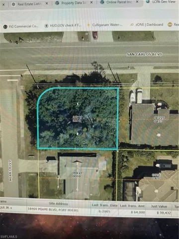 Fantastic opportunity to build your dream home or investment property on this well-positioned corner lot at San Carlos Blvd and Miami Blvd in the highly sought-after San Carlos Park area. Ideally located just minutes from Sanibel Island and Fort Myers Beaches, offering easy access to world-class boating, fishing, dining, and entertainment.