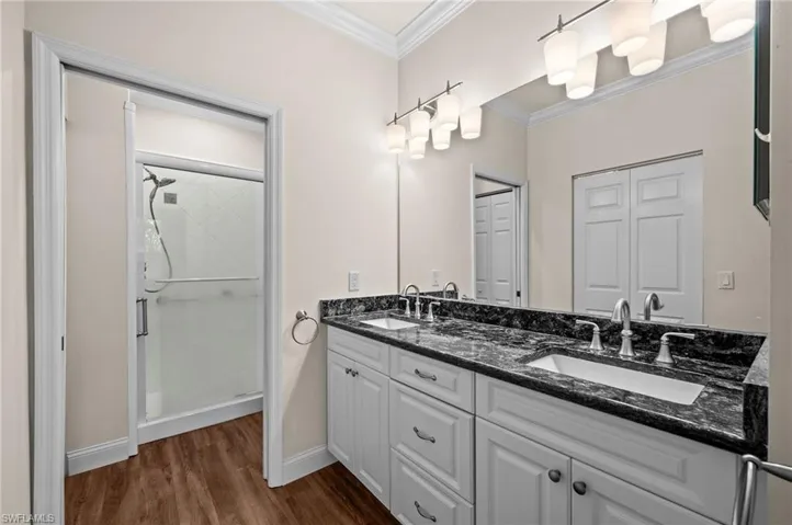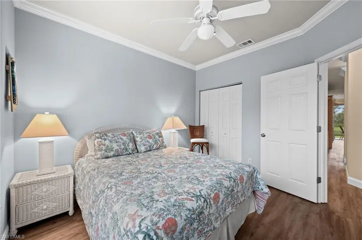 Uncover the charm of Parker Lakes with this impressive first-floor 2-bed, 2-bath unit. Prime location, just 5 minutes from Publix, Super Target, Walgreens, and 15 minutes from beautiful beaches. Recently upgraded, featuring a modern kitchen, stainless steel appliances, and new waterproof cork-backed flooring. Luxurious touches include crown molding, LED lighting, and custom closet shelving. Enjoy the convenience of walk-in closets and a screened lanai with stunning lake views. Additional perks include self-closing drawers, level 8 granite in the kitchen and bathrooms. With LED lighting enhancements above cabinets and sink, this home blends elegance with functionality. Elevate your lifestyle at Parker Lakes, where modern upgrades meet prime convenience.