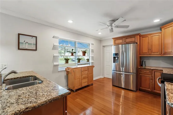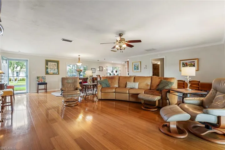 This is your chance to own an updated Villa with a TWO car garage located very close to the neighborhood pool! Glades Golf & Country Club is the best kept secret in Naples with unlimited bundled golf, tennis and pickleball located minutes from 5th Avenue & 3rd Street and the beaches! This 3 BR, 3 BA villa lives like a single family with no common interior walls. Impact glass and doors. Beautiful bamboo flooring. Living room has large TV and fireplace! Freshly painted. Large kitchen updated with granite and stainless appliances featuring a breakfast bar open to the dining and living room. 1,800 SF of roomy interior space plus a large glassed-in lanai with a wet bar and fridge overlooking beautiful tropical landscaping. The large master suite has a walk-in closet, one sink but plumbed for a second sink and a walk-in shower, both with custom tile. Off the third en suite bedroom is a second private lanai with patio! This bedroom has a private entrance door! The second guest bedroom is also en suite with updated bath. Garage has pull-down stairs for extra storage. The washer and dryer are located in garage along with a laundry sink and an extra refrigerator. The Glades has two recently renovated Audubon Certified, Gordon Lewis designed golf courses- the Pines par 70 course and Palmetto par 55 course. The Glades was recently chosen to host the South Florida PGA charity tournament! The beautiful clubhouse has been also recently renovated and has an active social calendar. The tennis courts have been upgraded & expanded to include eight pickleball courts! There are 8 neighborhood pools plus a beautiful club house pool, bocce & shuffleboard. The Glades is minutes to 5th Avenue & Beaches. The private clubhouse has delicious food for breakfast, lunch & dinner. $1,029/month dues INCLUDE unlimited golf for two, tennis, pickleball & other activities, clubhouse/restaurant, cable & wifi, water, & pest control.