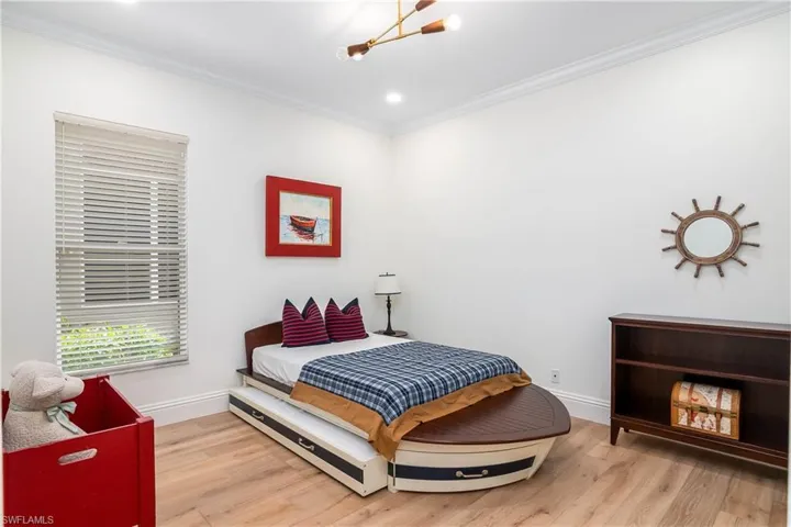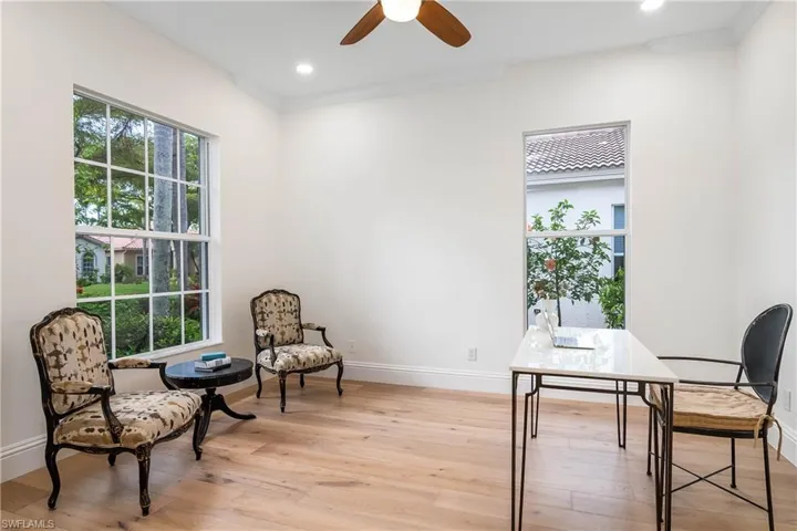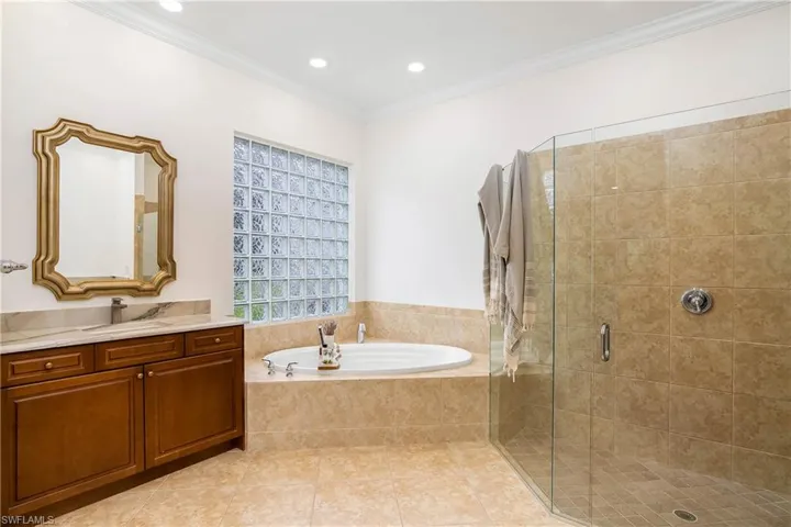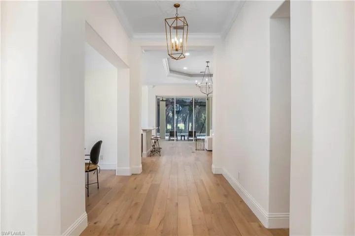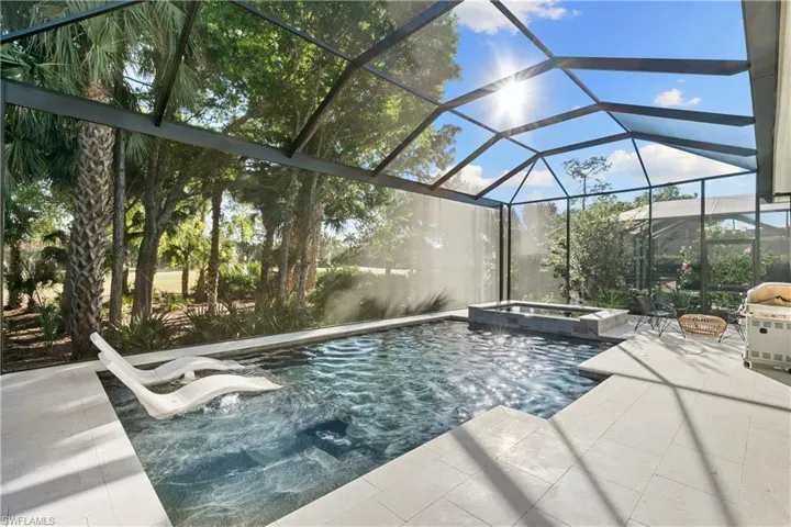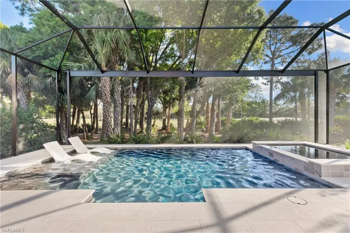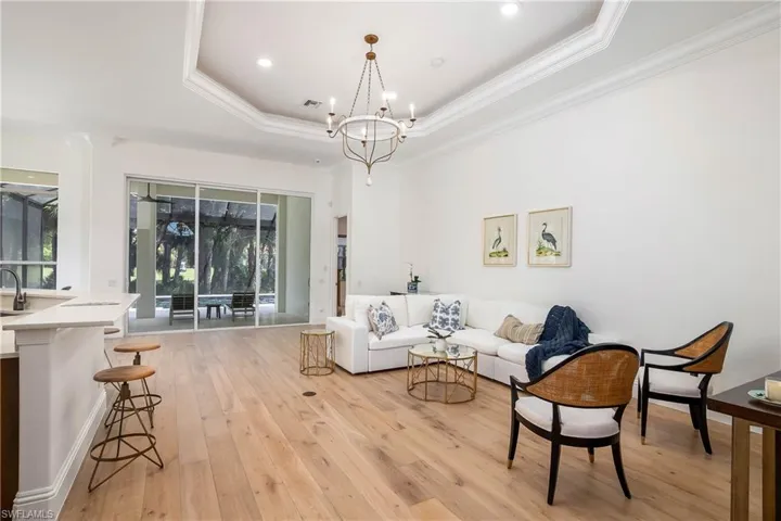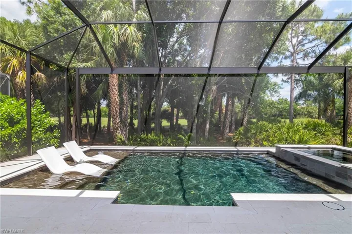 Live like you’re on a permanent vacation immersing yourself in bundled golf, tennis, luxurious community amenities and your very own BRAND NEW CUSTOM POOL! This newly renovated 3bd+den floor plan offers soaring ceilings, crown molding, an open concept kitchen with ample barstool seating, and an oversized primary bedroom equipped with his/her built-in closets and a spacious walk-in shower. Recent enhancements to this wonderful property include a NEW TILE ROOF installed in 2020, brand new white oak hardwood flooring with oversized baseboards, fresh interior and exterior paint, upgraded LED ceiling lighting and designer chandeliers throughout, new Kohler comfort toilets, seamless shower doors with custom bathroom cabinet hardware, and a new LG ThingQ Washer & Dryer with a stainless laundry sink and Taj Mahal marble folding table. Enjoy your own personal Floridan oasis with this newly completed custom salt water heated pool, inverted spillway jetted spa, sun shelf, shell-stone travertine decking, and a 40′ panoramic screen cage capturing stunning picturesque golf course views. This exquisite property is nestled in the well renown community of Vasari Country Club and truly needs to be experienced in person. Be sure to watch the feature video and schedule your private tour today!