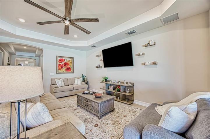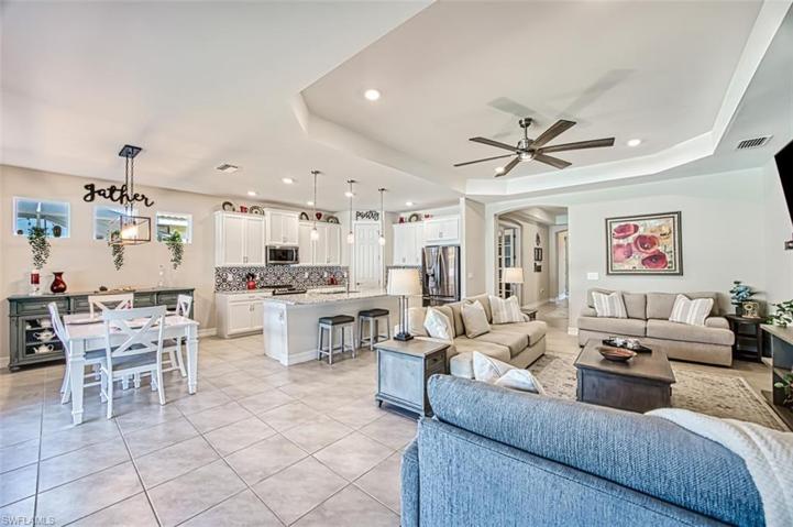 BEAUTIFUL 4 BEDROOM PLUS DEN 3-1/2 BATH GEM! This newer construction beauty is spacious, filled with light and charm and ready for you to move right in! Upgrades include $10k in master bedroom closet & laundry cabinetry upgrades, premium $15k LG appliance package upgrade, which includes double oven range with convection settings, beautiful French door refrigerator with custom round ice setting, extra-large-load washer and dryer with steam settings, upgraded lighting, 7 ceiling fans with remote controls throughout, upgraded kitchen tile backsplash, granite throughout kitchen & bathrooms, extended tile in main living areas, den & 4th bedroom, and spacious lanai overlooking a large private backyard setting! The open great room floor plan offers a very spacious living room, dining room & large open kitchen with ample breakfast/entertainment bar with comfortable 4+ seating capability, spacious pantry and beautiful 42″ upper cabinets with molding. Located in the beautiful community of Lindsford, enjoy year-round resort-style amenities with a gorgeous pool & spa, beautiful clubhouse, tennis, bocce, playgrounds and a very socially active lifestyle! Come see this gem & fall in love today!