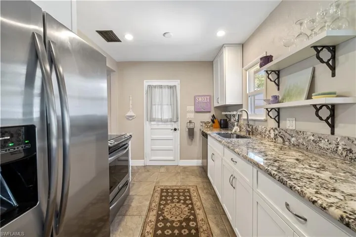 Vintage charm with Modern updates in the Coveted Location along the Historic McGregor Boulevard. You will be in a prime neighborhood to enjoy quick access to the Downtown River District & Edison Ford Winter Estates. NO HOA Fees! No Flood Zone! Great starter home, seasonal home or income producing property. Lovingly cared for and updated Bungalow style home showcasing Gorgeous Hardwood Floors. Light and Bright with an Open and versatile Floor Plan. Kitchen features Granite Counters, White Shaker Cabinets, Stainless Steel Appliances and open shelving. Kitchen opens to the Tiled Great Room with sliders to the new deck. There is a formal living Room with fireplace and Dining Room with chandelier. Two Bedrooms with real Hardwood floors and large walk-in closet. There is an additional 200 sq’ Screened Room with ceiling fan for lounging, dining and taking advantage of our great Florida weather. There is a deck in the fenced backyard. There is also an attached utility room for extra storage and washer dryer as well as an exterior shed for even more storage. Steps away from the Fort Myers Golf Course & Country Club and Allen Park School. Updates include Metal Roof (2016), Renovated Kitchen and Full House Re-wire by Cornerstone Builders of SWFL (2017), Updated Bathroom (2024), Hardie Plank Exterior Siding (2017), Deck(2024), Hot Water Heater (Dec 2023) and Freshly Painted Exterior (2024). Furnishings are negotiable if buyer is interested in Turnkey. Convenient to hospitals, schools, restaurants and more. Home is easy to show, just call to set an appointment.