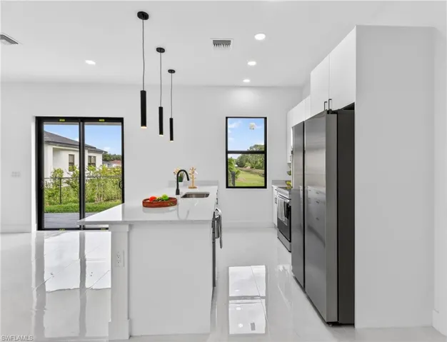 Stunning brand-new home located on a desirable corner lot with a peaceful canal view in the back, offering added privacy and extra outdoor space. This home features modern touches throughout, designed with today’s lifestyle in mind. Including a stylish built-in coffee station, perfect for your morning routine. Conveniently located in Lehigh Acres, just minutes from State Road 82, providing easy access to shopping, dining, schools, and major routes. Enjoy the benefit of being close to the heart of Lehigh while still having the serenity of canal-side living. Beautiful