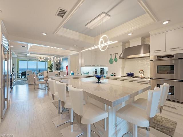 Enjoy the best in luxury beachfront living and views from this remodeled 2bed+den/convertible 3rd bed, 2.5 bath, turnkey furnished condominium with Coastal Contemporary ambiance, exquisite finishes, expansive beach views, & year-round sunsets located in desirable Madeira, the newest beachfront condominium on Marco Island. Extraordinary views from many vantage points in this luxury condominium from the white sandy beach, turquoise waters of the Gulf of Mexico, & vibrant sunsets to the shimmering city lights on the rear lanai. No expense spared on this recently remodeled condo boasting an open, gourmet kitchen with beautiful views of the beach, 6 burner gas range, center island accented with a granite countertop, quality appliances, & stunning backsplash. Attention to detail throughout with stunning lighting accents, beautiful artwork including an Everglades landscape mural (by infamous artist Tim Parker) in living room, and exquisite furnishings/accent items. Madeira offers world class amenities (pickleball court, tennis court, theater room, guest suites, & state-of-the art exercise room, guard at gate private, elevator lobby) & convenience to all that the JW Marriott has to offer.