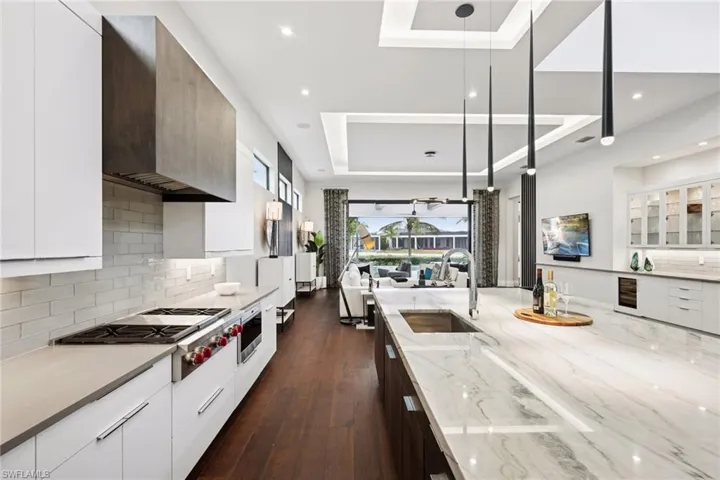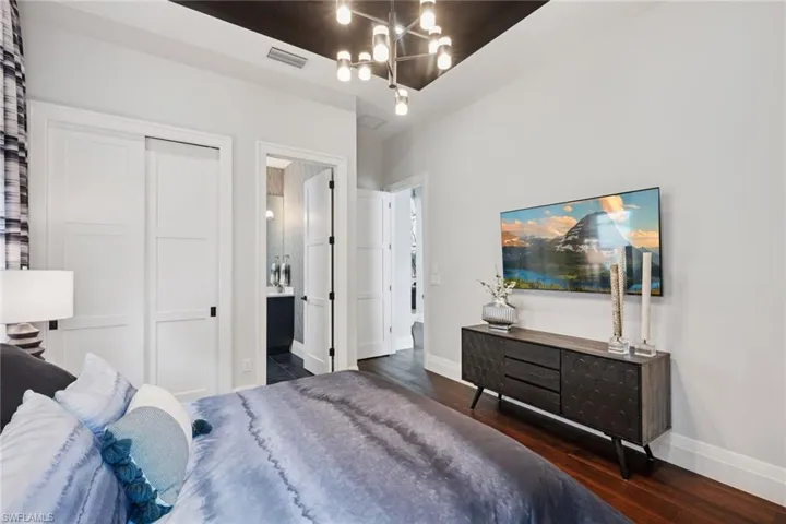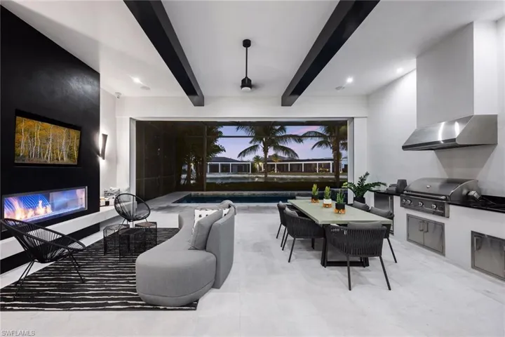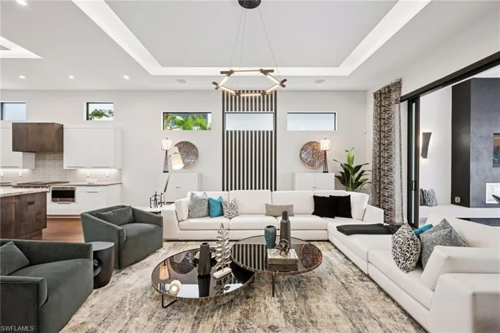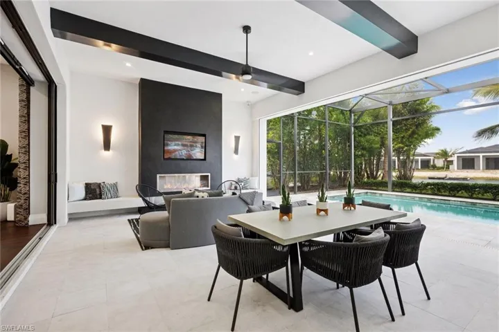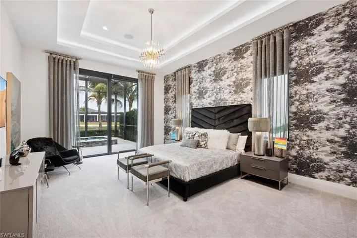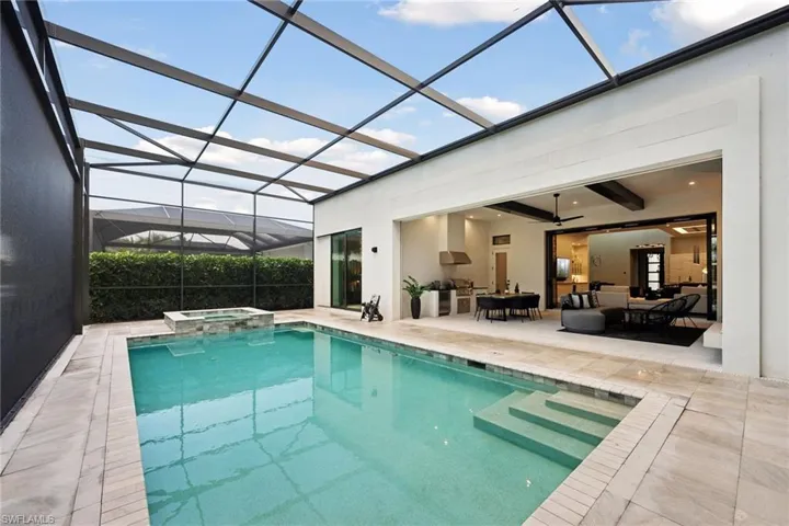 Welcome to this luxurious single-family Beach Villa crafted by Divco, nestled within the exclusive Trevi neighborhood of the renowned Miromar Lakes Beach & Golf Club. This exquisite four-bedroom, four-and-a-half-bath residence is designed with modern elegance, featuring richly contrasting tones, dark wood flooring, artisan tile accents, quartz countertops, and custom-finished vanities. The open-concept layout seamlessly integrates a spacious great room, an elegant dining area, and a chef’s kitchen equipped with premium stainless steel appliances, light cabinetry, a walk-in pantry, and a wet bar with a wine refrigerator—creating an ideal space for both casual living and grand entertaining. Step outside to your private outdoor oasis, where a resort-style pool and spa invite relaxation, while an outdoor kitchen and fireplace set the perfect ambiance for alfresco gatherings. Situated between a pristine white-sand beach and a 700-acre freshwater lake, this residence offers direct access to boating, waterskiing, and wakeboarding from a shared dock in the backyard, while the lush Botanical Park in the front yard provides a peaceful retreat. At Miromar Lakes Beach & Golf Club, residents enjoy a five-star resort lifestyle with three miles of private beach, two marinas, a Beach Clubhouse, Blue Water Beach Grill, a 10,000-square-foot zero-edge infinity pool, and courts for tennis, bocce, and pickleball. The full-service European-style Spa & Fitness Center offers ultimate relaxation, while a vibrant social calendar fosters a welcoming and dynamic community. Golf enthusiasts can also opt for membership at the Arthur Hills Signature Championship Golf Course, featuring a masterfully designed layout that challenges and inspires. Experience the ultimate lakefront lifestyle, where luxury, recreation, and relaxation are seamlessly woven into everyday life.