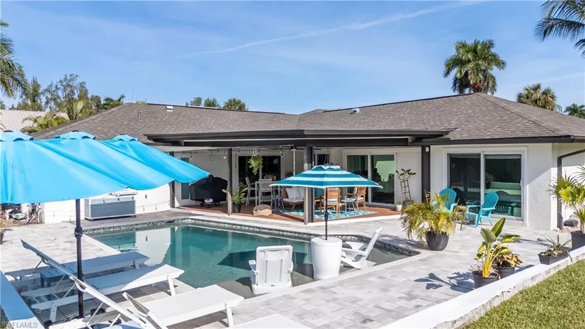 Welcome to your Whiskey Creek Oasis! This beautifully updated 3-bed, 2-bath home sits on a sprawling corner lot in the highly sought-after Whiskey Creek community. With no HOA fees, no restrictions, and a location just minutes from the famed white sandy beaches and salty shoreline, this home delivers the ultimate blend of freedom and coastal convenience. Designed for both comfort and entertaining, the property features an expansive fenced yard with a true outdoor retreat—lush landscaping, multiple lounge areas for sun or shade, and generous covered space perfect for year-round enjoyment. The pool and pool deck have been completely reconstructed, showcasing a gorgeous modern finish and an elegant paver surround that creates a resort-like outdoor atmosphere.