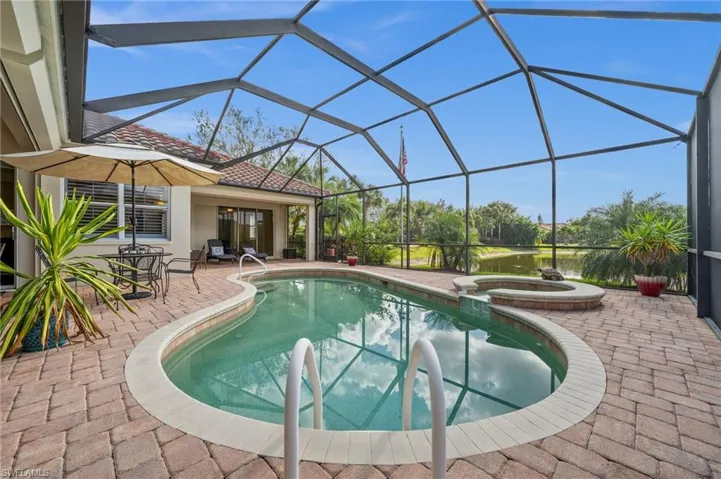 Situated on an oversized corner lot in the prestigious neighborhood of Walden Lakes, this stunning waterfront 4-bedroom pool home offers the perfect blend of space and functionality. Tasteful updates can be found throughout, including recently installed Brazilian cherry engineered flooring and a full kitchen remodel featuring an induction cooktop, convection wall mount oven, and under counter wine cooler. With two separate living spaces, as well as an eat-in kitchen and formal dining area, this home is designed for those who love to entertain. Split bedrooms allow privacy for all, including a guest bedroom with an ensuite/pool bath. Natural light flows into the home through multiple sliders, leading to the expansive outdoor area with southern exposure, providing two under truss lanai’s, an outdoor kitchen, and a heated pool & spa. The fenced in side yard grants privacy with lush landscaping and features a built in fire pit as well as a synthetic grass dog run. A newer tile roof (2022), AC (2020), electric shutters, water filtration system, and being located in a X flood zone will offer peace of mind for years to come. Walden Lakes is positioned inside of the gated community of Gateway Greens, home to the optional Club at Gateway. The Club at Gateway offers multiple membership opportunities, and features an 18-hole Tom Fazio designed golf course, a clubhouse that recently underwent a $5 million renovation, lighted tennis courts, pickleball courts, a fitness center, resort style pool and more! Outside of the gates, Gateway is home to multiple restaurants, shops, and schools all within the community. Conveniently located between Daniels Parkway and Colonial Boulevard, you will have easy access to I-75, Fort Myers, and the beautiful beaches of Southwest Florida. Schedule your showing today!