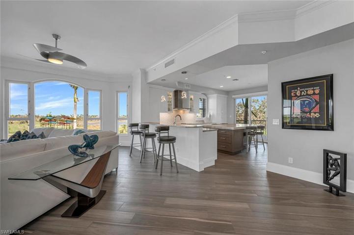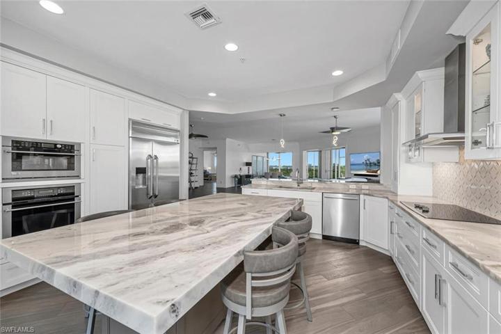 Floor to celling windows provide unobstructed panoramic views from this fully furnished 3,808 sf., 4 Bedroom, 4 bathroom, recently refurbished spacious residence. Ten-foot ceilings and floor-to-ceiling windows provide for a light & bright interior family and dining room. The café/wine bar is an added feature for you and your guests to enjoy. The kitchen with breakfast terrace features beautiful counter tops, quality stainless appliances, cooktop and double wall oven. The terrace off the living room is glass enclosed with sliding glass doors. Storm shutters throughout. The two-car enclosed garage offers plenty of additional storage space. Bayview has a resort style pool/spa, fitness room, social room and gas grills on the outdoor deck for al fresco dining. Bonita Bay has 5 golf courses, 18 court tennis center, 18,000 sf. fitness center, 8,000 sf. lifestyle spa & salon, full-service marina, beach park, 6 restaurants, 8 pickle ball courts, crochet, bocce ball, canoeing, life enrichment center, 3 parks, & more. Don’t miss your opportunity to own this beautiful home.