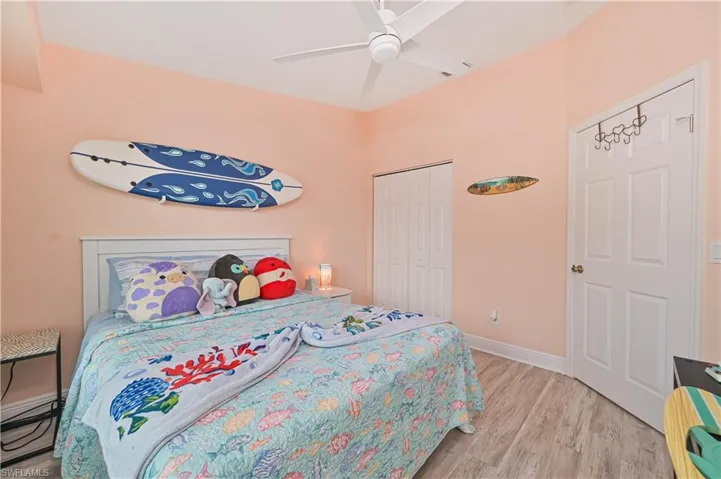 Welcome to Parker Lakes—no city taxes and no CDD fees. This furnished, turnkey 2-bedroom plus den villa offers a flexible floor plan, with the den easily convertible to a third bedroom, as seen in similar units in the community. The home features luxury vinyl flooring throughout with no carpet. Recent updates include 2023 impact windows and lanai sliders, a 2025 A/C system, 2022 appliances, 2022 plantation shutters, 2021 luxury vinyl flooring with 5-inch baseboards, 2021 fixtures and ceiling fans, and a 2021 hot water heater. The sale includes a 2025 sectional with an unused sleeper. The screened lanai provides a full panoramic lake view with a lighted fountain.