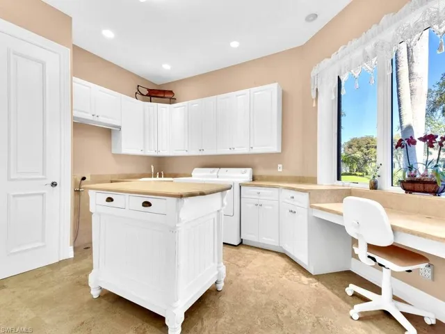 From the moment you pull into the circular driveway and park beneath the elegant Porte Cochère, you’ll immediately sense that this home is truly special. The grand mahogany front doors open to reveal a stunning living room, complete with built-in bookcases, a fireplace, and soaring coffered ceilings. This inviting space flows seamlessly onto the outdoor patio, pool, and screened Lanai, where sliding glass doors pocket away to offer an unobstructed, wide-angle view over the pool, extending all the way to the tranquil lake beyond. The master bedroom is a serene retreat, featuring a cozy fireplace and a sitting area with a large picture window that frames breathtaking views of the lake and surrounding woods to the west. A sliding glass door leads out to the Lanai, blending indoor and outdoor living. The master bathroom is an oasis, with dual sinks, a jetted whirlpool tub, and an expansive shower with multiple showerheads and transom lighting overhead. A lighted makeup vanity and a coffee bar area further enhance the space, providing the ultimate in convenience and luxury. The master closet, accessible from both the bathroom and the living room, offers ample storage and organization. The formal dining room is a delightful space, with large windows and elegant transoms above, creating a bright and inviting atmosphere for dining. The heart of the home is the Great Room and Kitchen area, designed for easy flow between all parts of the house. Large pocketing sliding glass doors open wide, offering access to the sundeck, sitting area, and outdoor kitchen/eating space in two directions—perfect for entertaining and enjoying the outdoors. A guest suite hidden away on the ground floor “The Hacienda Room” offers seamless access to all parts of the home while affording perfect peace. The office features large pocket doors, allowing for privacy when needed while maintaining an open connection to the main living spaces. A beautifully crafted circular staircase leads to the upper level, where guests can enjoy privacy and tranquility in thoughtfully designed spaces. Two guest rooms upstairs provide a peaceful retreat, ensuring comfort and relaxation. The “West Indies Room” at the back of the home features French doors that open onto a balcony overlooking the pool and lake, offering stunning views and a serene atmosphere. The “Whimsy Room” above the garage is both charming and comfortable, with all the amenities one could need to feel right at home. Additional features of this exceptional property include a three-car garage and a workshop space, accessible only from the garage or the driveway. This truly is a one-of-a-kind home, offering comfort, rest, and relaxation for everyone.