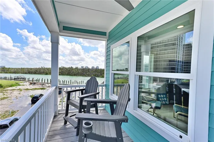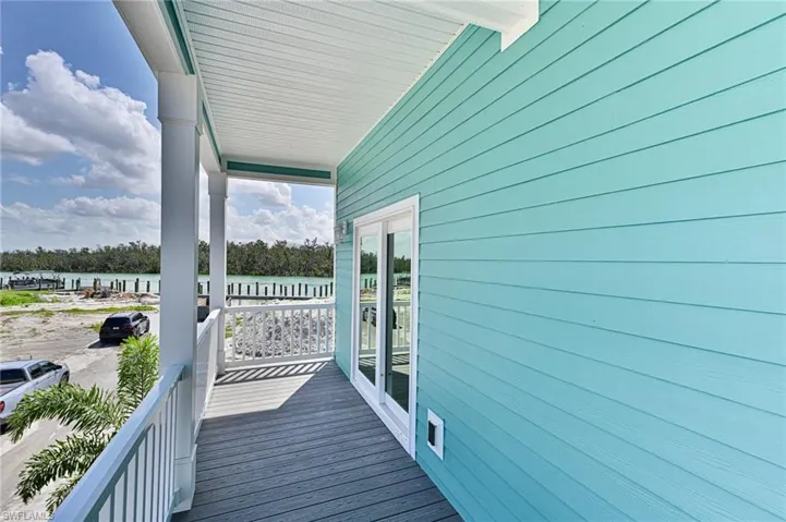 This 3 story Bonita Beach Village home was just completed in 2024 an offers everything for the perfect Florida lifestyle including: a beach access just across the street to the newly re-nourished and widened beautiful Bonita Beach, a boat dock at the newly constructed and elevated seawall with the pass to the Gulf just minutes away, views of the turquoise waters of the Gulf and Bay, and a 3 bedroom 2 1/2 bath Coastal beach home built to withstand 180 MPH winds with a metal roof, impact windows & doors and concrete siding, plus it is elevated above flood requirements. Best of all is the open floor plan and finishes of the house. The main floor offers a large kitchen with island open to the dining, great room and outdoor deck plus a half bath and laundry room. The upper living level offers two bedrooms, a full bath, large master bedroom & bath and outdoor covered deck. The lower level features 2 car oversized pavered carport, enclosed storage and entrance stairs to the living levels. Features and finishes include: vinyl wood plank flooring, solid doors, quality millwork, custom cabinetry, stainless steel appliances with oversized refrigerator/freezer, quartz countertops, designer wall and floor tile in the bathrooms. The furnishings including TVs can be purchased with the house for easy immediate move in. Bonita Beach Village consists of 40 lots with eventually 30+ homes all new, with low fees ($2,000 annually) and an amazing location. There are 5 more homes being built now and 2 more getting ready to start by Owners. The Sellers have purchased another home within the community and love living there. If you are looking for a true low maintenance, no worries Beach/Bay home for the best price on Bonita Beach you have just found it. NOTE: The community will be burying all power lines, installing newly paved roads with curbs and new landscaping.