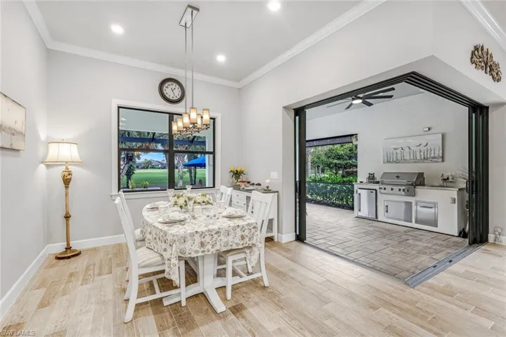 Luxury Living – Greyhawk at Golf Club of the Everglades. Discover a home that blends timeless charm with modern luxury in the coveted Greyhawk at Golf Club of the Everglades. From the moment you arrive, the inviting rocking chair front porch sets the tone—perfect for morning coffee or evening daydreams, surrounded by lush professional landscaping. Inside, the open-concept design feels light, bright, and effortlessly welcoming, with hurricane-impact windows and doors for peace of mind. The flexible floor plan offers three bedrooms, but with the option to reimagine spaces—convert one into a den/office, or transform the extended garage into a fourth bedroom if desired. The heart of the home is the chef’s kitchen, featuring gas appliances, a walk-in pantry, and abundant cabinetry—perfect for everyday meals or entertaining. The spacious owner’s suite is a private retreat with a walk-in shower and extended walk-in closet. Step through zero-corner sliding doors onto the expansive screened lanai and take in serene views of the 6th hole of the championship golf course through the Panoramic screen cage. Entertain with ease thanks to a brand-new outdoor kitchen, or unwind in the heated, saltwater pool with sun shelf—just three years young. Additional highlights include: A dedicated desk area adjacent to the oversized laundry room, an extended two-car garage with epoxy flooring and attic storage and a flexible floor plan options tailored to your lifestyle. Life at Greyhawk is truly exceptional. This amenity-rich community of just 564 homes offers two clubhouses with year-round dining, resort and lap pools with spa, tiki bar, state-of-the-art fitness center, card rooms, fire pit, and more. A full-time Sports Director coordinates Bocce, Pickleball, and Tennis, while the Lifestyle Director curates a lively calendar of events. Best of all—no CDD, no special assessments, low HOA and golf fees. Choose social golf membership or elevate your game with a full golf membership. This is more than a home—it’s a lifestyle, waiting for you.