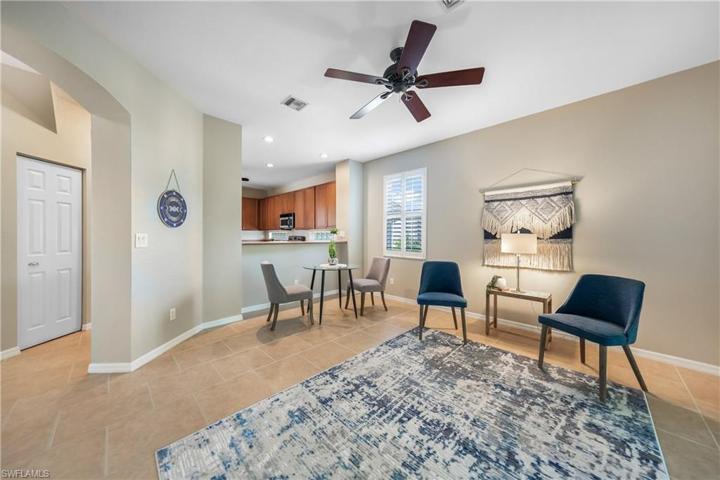 This one sure checks off all of the boxes. First, hard to come by 4 bedroom plus loft, 3 bath situated on a corner lot with 3 CAR GARAGE and a unique circular driveway providing ample space for parking. This home has literally 4 living spaces to sprawl out in and offers a convenient FIRST FLOOR BEDROOM with attached bath for out of town guests or the in-laws. Lots of walk in closets and storage and a fenced in backyard. Huge living room and family room, a loft and a fully covered outdoor lanai spanning the back of the house. Best yet, this home has a BRAND NEW TILE ROOF in May of 2023, fresh professional interior and exterior paint, brand new carpet throughout, and a BRAND NEW HVAC system has just been completed prior to listing. Great location walking distance to community pool. This quaint community is known for its LOW HOA fees, NO FLOOD INSURANCE, great central location, and friendly community. Only minutes to I-75, RSW International Airport, shopping, FGCU, Mirromar/Coconut point, entertainment and the award winning beaches, FGCU and more. Be sure to watch the video tour experience and schedule your private showing today.