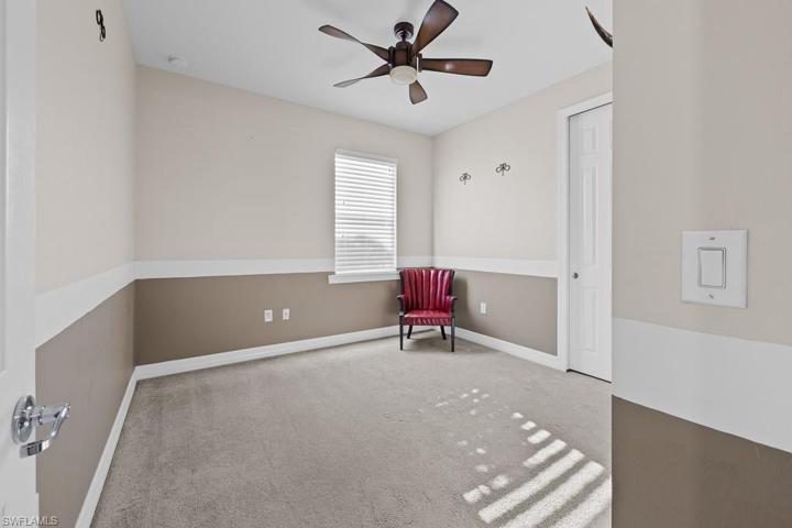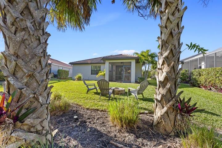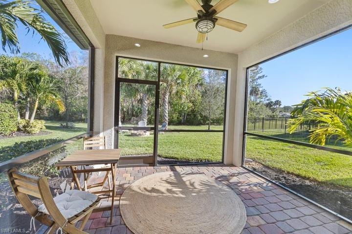 This meticulously maintained 3 bedroom plus den, 2 bath is nestled on a quiet dead end street with a preserve view. The light and bright, spacious kitchen with large island and upgraded Whirlpool appliances flows seamlessly into the dining area with views directly to living room and serene screened lanai/backyard beyond. The Master and second bedroom walk-in closets both have custom built-ins for maximum organization and storage. Enjoy living on a construction complete private road just one block from the Town Hall Amenity Center where you’ll find a huge, lagoon/resort style pool, meeting rooms, a library/card room, a 3000 sq. ft. fitness center with yoga studio. Just outside the building is a children’s play area as well as bocce, tennis, pickle ball courts, and an open field for plain old fun of any kind! SELLER HAS A VERY COMPETITIVE 3.875 ASSUMABLE VA LOAN (Lender Approval Required)! Gym equipment, garage refrigerator, garage storage shelves/containers, and safe, do not convey.