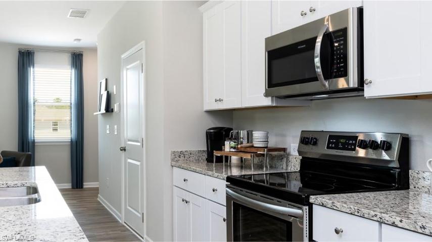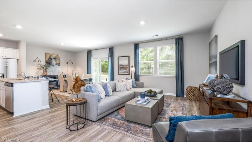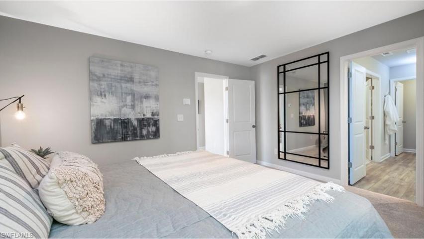 The 1,870-square-foot Atlanta Floorplan offers open plan living at its finest. Family and friends can gather in the heart of the home where an island kitchen includes, upgraded White Shaker Style Cabinetry and Quartz Countertops, family dining area, and family room blend seamlessly with tile throughout. Upstairs offers another living/loft space, the owner’s suite including a walk-in closet, dual sinks, and shower as well as three additional bedrooms make use of a well-appointed second full bath. The back patio provides an ideal place to enjoy a cup of morning coffee. Located at the “gateway” between Fort Myers & Cape Coral, Crane Landing residents have easy access to US-41. Nearby, the Shell Factory and Yellow Fever Creek Preserve offer miles of reserves and marked walking trails . Downtown Fort Myers is just a short drive across the Caloosahatchee River, offering fabulous dining, shopping, arts, and historical landmarks to explore. Photos & virtual tour are of model home & are used for display purposes only. Estimated delivery November/December 2023.