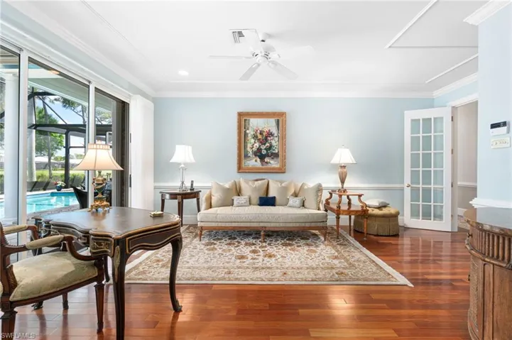 Beautiful home with spectacular golf course & lake views offered in North Naples’ coveted “Audubon Golf & Country Club!” NO WAITLIST FOR OPTIONAL GOLF MEMBERSHIP! This light & bright 4,541 sq ft home is finely appointed with 3 beds + den, 4 baths, soaring high tray ceilings with crown molding, hardwood & marbled flooring throughout, NEW HVACS, HOT WATER HEATER & POOL HEATER IN 2022. Expansive outdoor oasis is perfect for entertaining with a heated pool/spa, ample lounging areas & a super screen window enclosure for endless picturesque views of the lake & golf course. Stunning Chef’s kitchen offers solid wood cabinetry, granite countertops, high-end appliances & an eat-in kitchen. Spacious primary bedroom includes a private sitting area with direct access to the lanai & a spa-like bathroom with a free-standing tub, large glass shower & dual vanities. Other features include 3 generously sized guest bedrooms with en suite baths, den & formal dining room. “Audubon Country Club” is perfectly located 5-min from Mercato & SWFL’s world-class beaches, with gated/guarded entry, an 18-hole championship Golf Course, tennis, pickleball, Bayside boardwalk, newly renovated clubhouse with dining & 2nd brand-new spectacular poolside club/café.