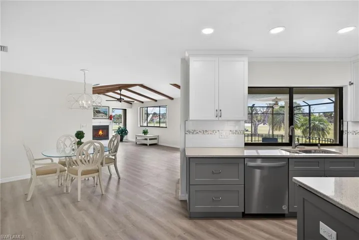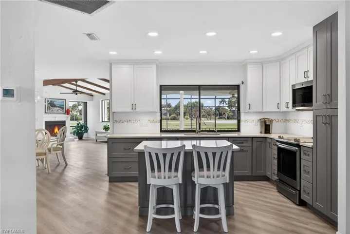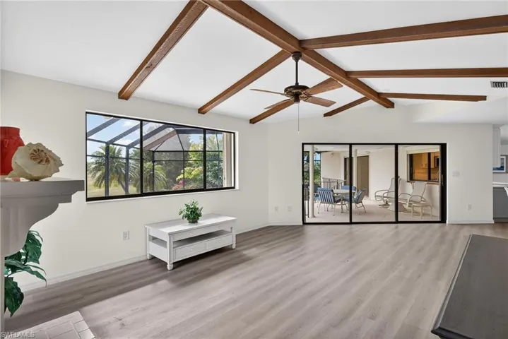 In the desirable Beachview community, this exceptional Sanibel Island residence offers a rare and compelling combination of championship golf, effortless beach access and relaxed sophistication that defines island living. Beachview is one of Sanibel’s sought-after enclaves, where a beautiful 18-hole golf course and the island’s world-famous sugar sand beaches exist in balance, both just moments from your door. From the moment you go inside, the home feels bright, open and inviting, with expansive views stretching across multiple fairways and lush, manicured greens. Sunlight fills the interior, creating an easy, breezy atmosphere that reflects the natural beauty of the island. The updated kitchen is stylish and functional, featuring elegant cabinetry, refined countertops, stainless steel appliances, and a welcoming island designed for conversation, connection and effortless entertaining. The open floor plan unfolds gracefully, offering two distinct living spaces ideal for everyday comfort and hosting guests. A spacious entry living room sets the tone, while the vaulted family room, with dramatic exposed beams and a warm fireplace, creates a relaxed yet sophisticated gathering place with picture windows overlooking the golf course. Large glass doors seamlessly connect the indoors to the elevated pool terrace, where the views extend uninterrupted across the rolling golf course. The primary suite is a private retreat, designed to capture light and scenery. Sliding glass doors open directly to the pool, inviting morning sun and tranquil fairway vistas. The remodeled bath evokes a spa-like experience with beautiful tilework, refined finishes and a sense of calm luxury, while two generous walk-in closets provide ease and convenience. Outdoor living is where this home shines. The elevated, covered pool deck offers an idyllic setting for sunset dinners, weekend entertaining or quiet evenings under the coastal sky. Here, the gentle rhythm of island life unfolds, cool blue water, lush green fairways and soft Gulf breezes creating a setting that feels exclusive and serene. And when the beach calls, the Gulf of Mexico is just a short distance away. Spend your days shelling, sunning, or visiting miles of pristine shoreline before returning home to the privacy and comfort of Beachview. This is more than an exceptional value, it is an extraordinary opportunity to secure a refined island lifestyle in one of Sanibel’s desirable communities.