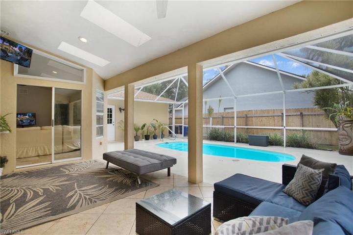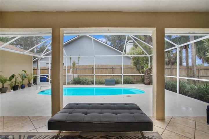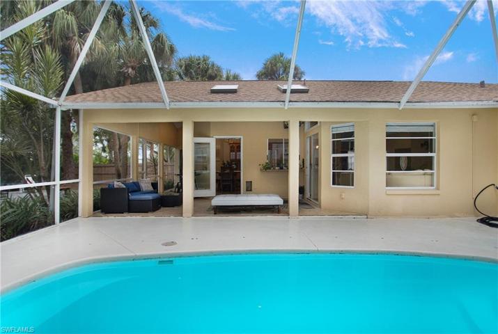 MOTIVATED SELLER RELOCATING OUT OF THE AREA!!! Beautiful POOL home and a DOG’S PARADISE with a fully fenced yard. Your dream of living in paradise awaits with this lovely Concrete/Stucco home with NO HURRICANE DAMAGE. Located in the peaceful gated community of Willow Creek! This 3 bed/2 bath + den home offers a screened-in lanai, pool with a removable enclosure. Inside you will find an open floor plan, perfect for entertaining. Elegant details are found throughout such as vaulted ceilings in the main living area, pendant lighting over the breakfast bar, and French doors into the den. The primary bedroom boasts a spa-like ensuite with an oversized glass walk-in shower. Updates include a new heater, new dishwasher, and newer roof (2021). You will appreciate the convenience of the in-residence laundry room with laundry tub. The expansive lanai features ample outdoor living space and is accessible from the main living area, eat-in kitchen, and the primary bedroom. Enjoy sipping a cocktail while watching the gorgeous Florida sunsets or taking a dip in the pool. You will find a serene tropical oasis in the large backyard, complete with mature trees and patio. The property extends 30′ beyond the back fence, allowing for storage of a boat, utility vehicle, etc. Community amenities are within walking distance to the home, and include tennis courts, basketball, shuffleboard, and a lakeside pavilion. With easy access to US-41, Fort Myers, Pine Island, world class dining, shopping, entertainment, beautiful white-sand SW Florida beaches and much more, don’t miss the opportunity to call this home yours!