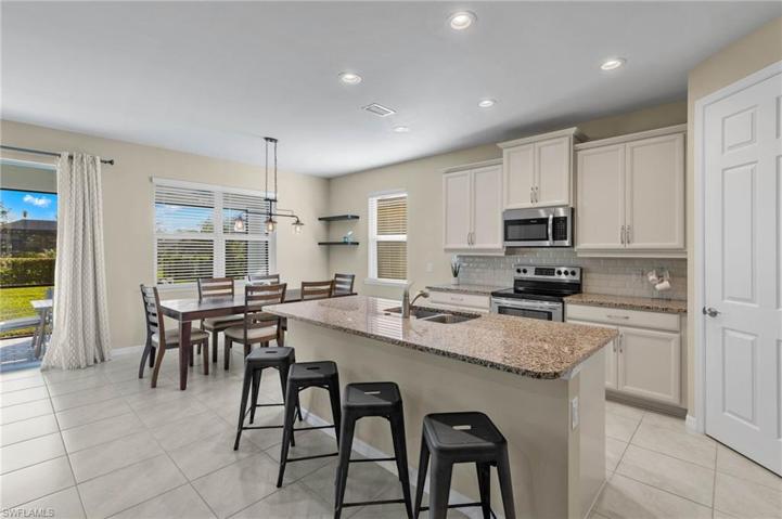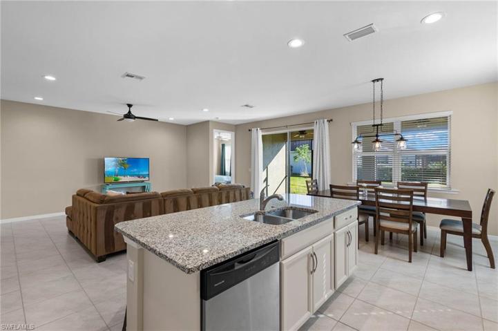 Amazing Furnished DR Horton home. Avon 3/2/2 floorplan, rarely used winter retreat. Like new! Low maintenance fees, lawn care included,3 houses from community pool & workout center! NO FLOOD insurance required, high & dry, FEMA letter attached. Enter a gracious foyer, opening to a bright open living area overlooking outdoor living space with partial lake view. Oversized lanai designed for optimal outdoor enjoyment, enough space for a pool. Kitchen boasts 42” upper cabinets, granite countertops, stainless steel appliances and large walk-in pantry. Entertaining is easy in this open floor plan with volume ceilings, tile & luxury vinyl flooring, 8’ doors, and ideal three way split bedroom plan for maximum privacy. Relax in your spacious primary suite with large walk-in closet and ensuite bath featuring dual vanities and a step-in shower. Inside laundry with laundry tub and cabinets. Start enjoying all Southwest Florida lifestyle has to offer in your new home at Venetian Pointe ideally located near BEACHES, shopping, dining, entertainment, Health Park Medical Center, SWFL Intl Airport, Lakes Park, mere minutes to all the beautiful barrier islands of Sanibel, Captiva and Fort Myers Beach