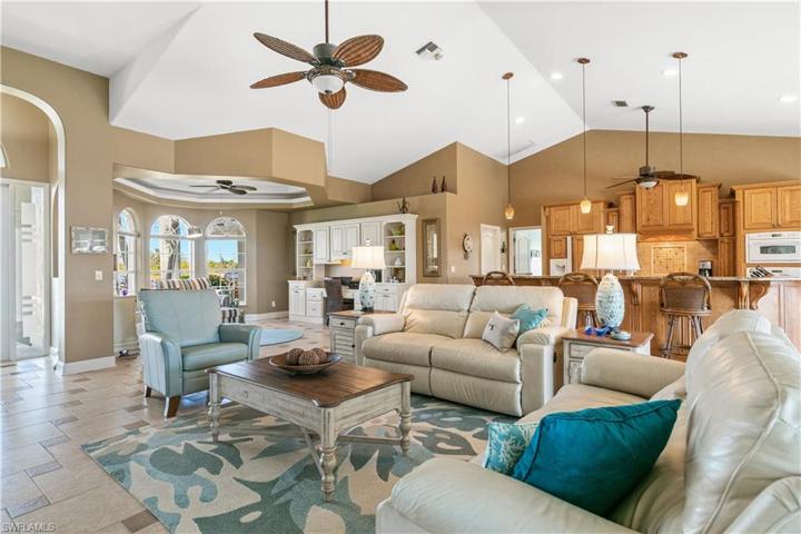Peninsula Pointe – one of the most exclusive neighborhoods in Southwest Cape Coral !! You will love this beautiful gulf access (no bridges) home on 200 foot wide canal! Enjoy the views from the moment you enter the bright & open great room, large chef ready kitchen w/granite counters, plenty of cabinets, large breakfast bar as well breakfast room overlooking pool/water. Home has also formal dining (currently used as sitting area). Spacious master bedroom w/tray ceiling, sliders to lanai & updated spa-like master bath w/stand alone tub, tiled w/i shower, double sinks & two w/i closets. Ample size guest bedrooms w/updated guest bathroom. Inside laundry & double garage w/great storage. New tile roof 2023, new pool cage 2022, Paradise seems easy while relaxing on this expansive screened lanai w/refreshing pool, outside kitchen & plenty of sunbathing room. Walk down to the extensive composite boat dock with 12K boat lift, boat canopy & picturesque tiki hut to savor & enjoy waterfront living. Imagine jumping into your boat from your backyard & heading out for some of the best fishing & ability to go anywhere in the world! Sunshine, palm trees & waterfront living – this is the life!