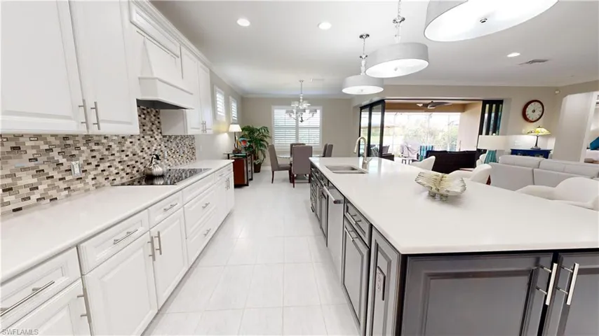 Del Webb Naples, Exceptionally Optioned “Pinnacle” Model Estate/Echelon Series Home w/Extended Rear Lanai, Spa, Impact Windows & Doors, Stone Front Elevation, “GenerLink System”, Many Extras, on Premium Oversized Cul-De-Sac Water Lot, Stunning Lake Views, Stone Front Elevation, 2519 Sq. Ft. 3088 Total Sq.. 3 Bedrooms, Den w/French Doors, 3 Full Baths, 3 Car Garage. GOLF MEMBERSHIP INCLUDED, Options Include; Rear Patio Extension w/Screen Enclosure 840 Sq.Ft. Outdoor Living Space, Impact Zero Corner Sliders, Whole House Impact Glass, 4’ Garage Ext., Walk-In Shower at Master Bath, Gourmet Kitchen Option w/Convenience/Luxury Pckg, Upgraded 42” Kitchen Cabinets w/Crown, Quartz tops, SS Kitchen Aid Appliances, Wood Canopy Vent Hood, Quartz Tops, 12×24 Plank Tile Flooring,
