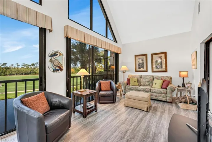 Experience breathtaking lake to golf course views from this Top-Floor, turnkey-furnished 2-bedroom, 2-bath condominium in an elevator building. Enjoy and relax in your expansive air-conditioned Florida room with vaulted ceilings and floor-to-ceiling picturesque windows and sliders that flood the space with natural light. The interior features are complemented by an open kitchen concept, stainless steel appliances, granite countertops, and an island with seating, creating a seamless blend of comfort and functionality. This is an exceptional opportunity to secure a Bears Paw golf membership immediately after closing. Take advantage and Discover the Bears Paw Country Club lifestyle!! Upon purchasing this attractive property, become an IMMEDIATE FULL GOLF MEMBER AT BEARS PAW COUNTRY CLUB, enhancing your lifestyle from day one; golf membership is mandatory and in addition to the real property. Act now to secure your ownership before the upcoming price increase on July 1, 2025. A golf cart, along with a dedicated cart garage conveniently located next to your assigned covered parking space, is also included. You’ll also have access to the new State-of-the-Art clubhouse, Fitness Center, Jack Nicklaus Signature Golf Course, Bocce courts, pickleball, tennis courts, dog park, driving range, two putting greens, and a Private Marina with Gulf Access. The gated and manned 24-hour community offers a walking/biking path to downtown Naples, is less than three miles from the beach, and is located in the City of Naples.