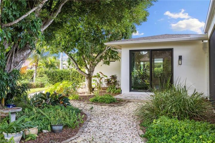 Impeccably remodeled contemporary masterpiece on a rare double lot in Naples Park, minutes from the sun-drenched Gulf beaches. No detail has been spared in the comprehensive 2019 renovation featuring all-new plumbing, electrical, hurricane windows, HVAC, water heater, floors, fixtures, showers & tubs. The open-concept design seamlessly connects the living spaces, creating an inviting atmosphere for entertaining & daily living. The gourmet kitchen boasts top-of-the-line appliances, sleek countertops & custom fixtures. The outdoor experience is equally impressive, with a stunning yard meticulously designed by Mentis Landscape Architect, providing a serene oasis. The seamless integration of indoor & outdoor living spaces enhances the overall appeal of this residence, allowing you to enjoy the beautiful Florida weather year-round. Conveniently close to fine dining & shopping at Mercato. With the perfect blend of modern design, meticulous craftsmanship & a sought-after location, this property is an opportunity to indulge in the ultimate Southwest Florida lifestyle. A quick walk or bike to the beach, don’t miss your chance to make this breathtaking home yours.