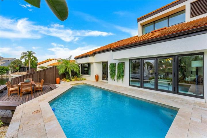 V13026 Rare opportunity to own this elegant, designer-renovated turnkey lakeside villa. The full-size private pool is framed by amazing, expansive long lake views in highly sought-after Bay Villas at Pelican Bay. Exterior updates include newer roof, A/C, hurricane windows, water heater, plumbing water filtration, lighting, landscaping, and a pergola vine-covered custom gas grill. Inside, an extensive interior renovation features soaring ceilings, large rooms, beautiful furnishings, custom window treatments, a floor-to-ceiling stone fireplace and exceptional views that impress you as you open the door. This warm, modern open concept provides indoor/outdoor living that is breathtaking inside and out. And just a few short blocks from the beach. Enjoy the unparalleled private amenities of Pelican Bay’s beach, golf course, tennis and pickleball courts, kayaks, canoes, sailboats, paved bike trail, shuttle services and waterfront restaurants. Pull into the 2 car garage, unpack your suitcase, and you’re ready to go — without the crowds. The property truly presents itself as the perfect upscale model villa. A must see!