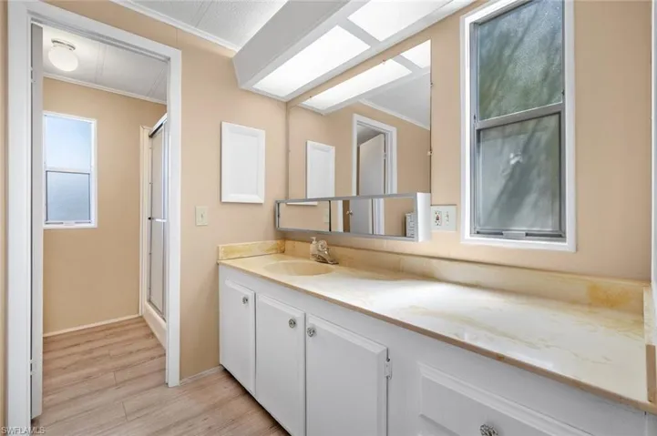 New vapor barrier, sub floor and new flooring throughout! This charming 2-bedroom, 2-bathroom residence boasts a spacious layout that offers not just one, but two inviting living areas. Natural light floods the interior, accentuating the warm ambiance created by the abundance of windows. The heart of the home is the well-appointed kitchen and dining area. The generously sized bedrooms provide ample space for rest and relaxation, with the primary bedroom featuring its own private bath for added convenience and privacy. A new roof was added in 2016 and has a twenty year transferable warranty. Step outside to discover the true essence of Florida living – a large screened-in lanai beckons for leisurely afternoons spent basking in the gentle breeze, while a covered carport ensures protection for your vehicle from the elements. But the perks don’t end there – as a resident of Cape Sable Lakes, you’ll have access to not one, but two sparkling pools to cool off in during those warm summer days, along with a vibrant social scene brimming with community events and gatherings. And here’s the cherry on top – with this home, you’ll not only be investing in your comfort and happiness, but in the ownership of the land itself, offering you peace of mind and a sense of permanence. Experience the perfect blend of comfort, community, and convenience in this delightful Cape Sable Lakes abode – your oasis awaits!