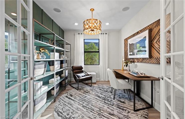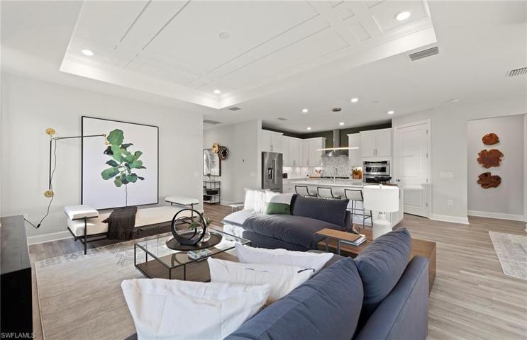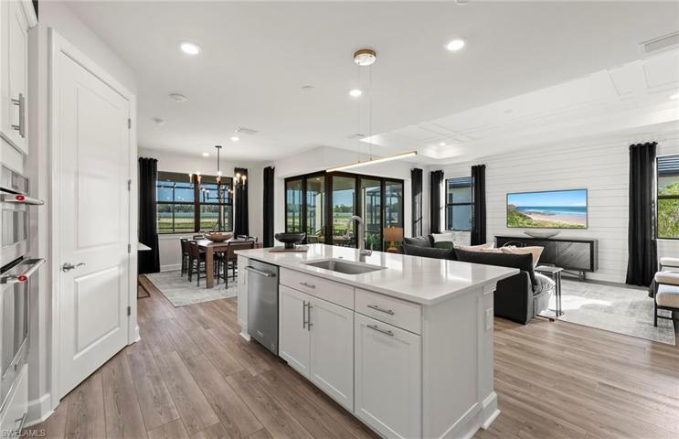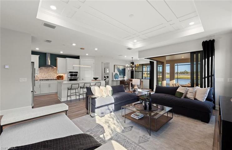 MODEL HOME AVAILABLE FOR PURCHASE in Manatee Cove. This stunning Mystique 3-bedroom, 2-bathroom residence is a model home and has breathtaking lake views with a pool, providing a serene backdrop to everyday life. Step inside and discover a well thought out layout that seamlessly blends modern living with classic charm. The secondary bedrooms and den are near the front of the home, and the master is tucked away for privacy, and features lake views. The kitchen is a chef’s delight with KitchenAid cooktop and gas oven, built in appliances, quartz countertops, and beverage station, convenient for hosting or for extra countertop/cabinet space. The spacious gathering room is open to the kitchen, and features beautiful tray ceilings, as well as zero-corner sliders onto your lanai to seamlessly blend the indoor and outdoor living spaces. Sip on your morning coffee from your café, or step out onto the lanai overlooking the stunning water views! Additional features include an enclosed flex room, 2-car garage with 4’ garage extension, and more! Furniture price: $30,000